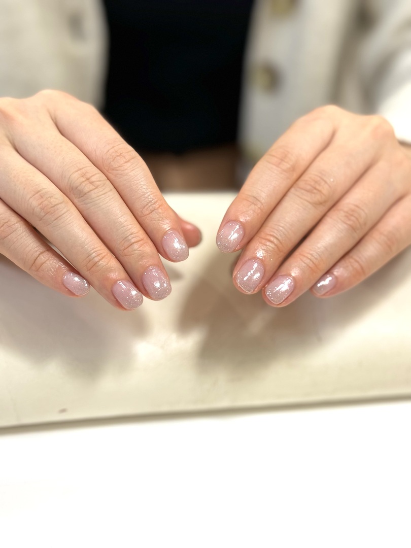 フラッシュジェルに大人気のクリアマグネットを重ねてキラキラとちゅるん感の両方を取り入れたデザインです♪